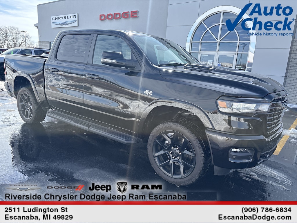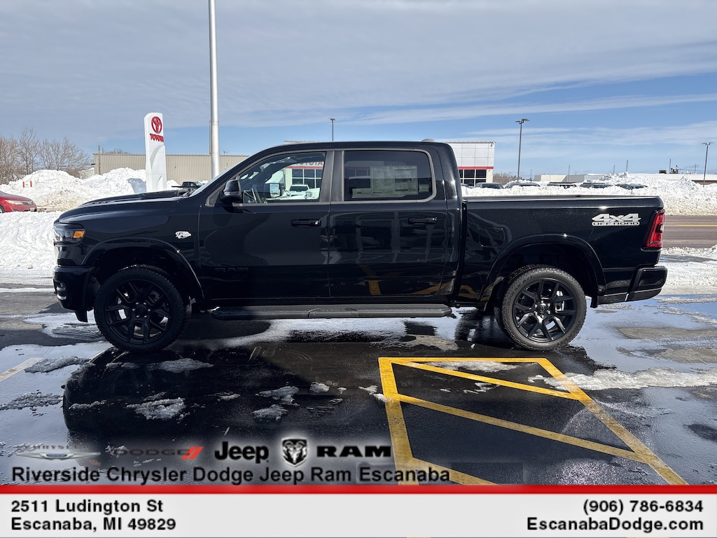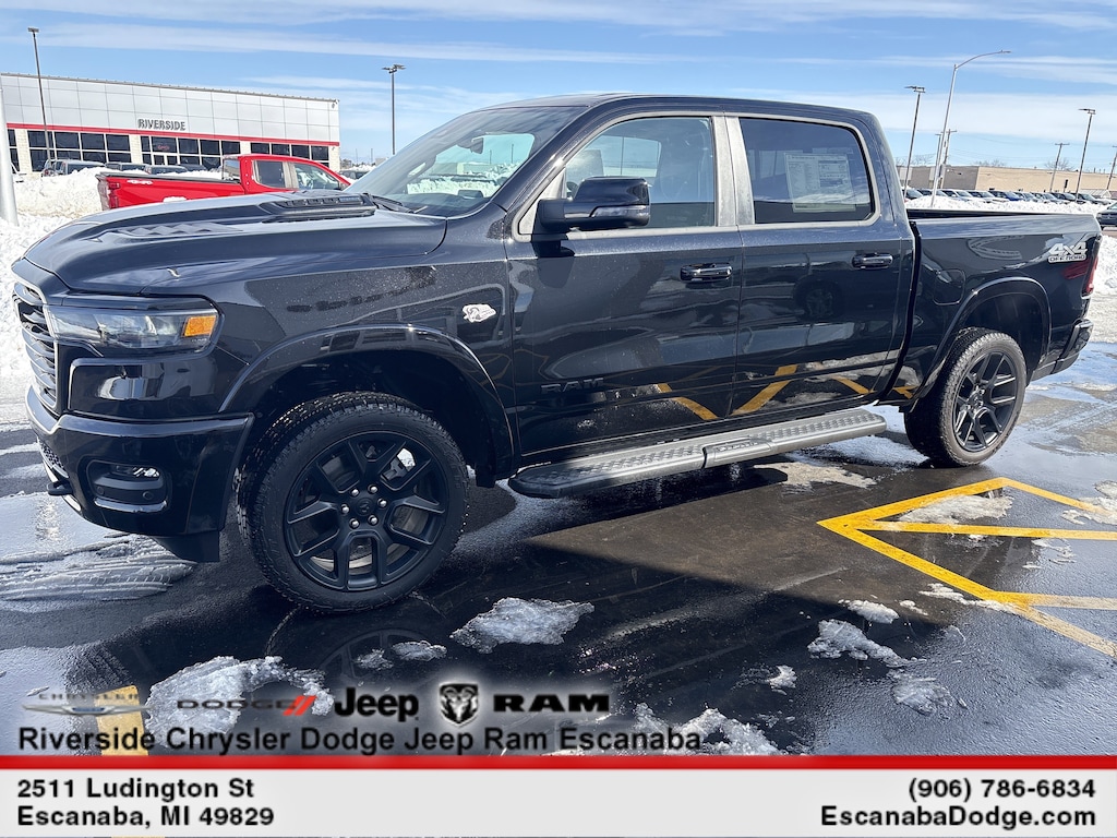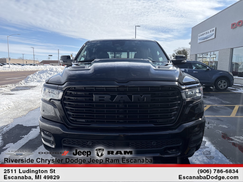 NIGHT EDITION Black Headlamp Bezels, Wheels: 22 x 9 Forged Aluminum, Tires: 285/45R22XL BSW All Season, Pirelli Brand Tires, Proximity Approach/Departure Lamps, Anti-Spin Differential Rear Axle, Accent Color Door Handles, Black Interior Accents, Body Color Front Bumper, Grille Surround 3 Black Texture 2 Black, Body Color Rear Bumper w/Step Pads, RAM Grille Badge - Black, Black Painted Exterior Mirrors Caps, Exterior Mirrors Approach Lamps, Accent Color Premium Power Mirrors, Sport Performance Hood, Black Exterior Truck Badging, Accent Color Tailgate Handle, Dual Exhaust w/Black Tips, Black Tail Lamp Bezels, LARAMIE LEVEL 2 EQUIPMENT GROUP Rain Sensitive Windshield Wipers, 14.4 Touchscreen Display, Front Passenger Interactive Display, Radio: Uconnect 5 Nav w/14.4 Display, harman/kardon® 19 Speaker Premium Sound, Cluster 12 TFT Color Display, Power Tailgate, DUAL-PANE PANORAMIC SUNROOF LED Dome/Reading Lamp, Dome Dual LED Reading Lamp, OFF ROAD GROUP Off Road Decals, Steering Gear Skid Plate, Falken Brand Tires, Raised Ride Height, Front Extra HD Shock Absorbers, Rear Extra HD Shock Absorbers, Full Size Spare Tire, Tow Hooks, E-Locker Rear Axle, Transfer Case Skid Plate, Fuel Tank Skid Plate, Selec-Speed Control, ENGINE: 5.7L V8 HEMI MDS VVT ETORQUE 48V Belt Starter Generator, Heavy Duty Engine Cooling, Passive Tuned Mass Damper, Delete Alternator, Passive Cold End Exhaust, 18 Aluminum Spare Wheel, MOPAR BLACK TUBULAR SIDE STEPS, MOPAR FRONT & REAR RUBBER FLOOR MATS, TRANSMISSION: 8-SPEED AUTOMATIC (8HP75) (STD). Ram Laramie with Diamond Black Crystal Pearlcoat exterior and Black interior features a 8 Cylinder Engine with 395 HP at 5600 RPM*.