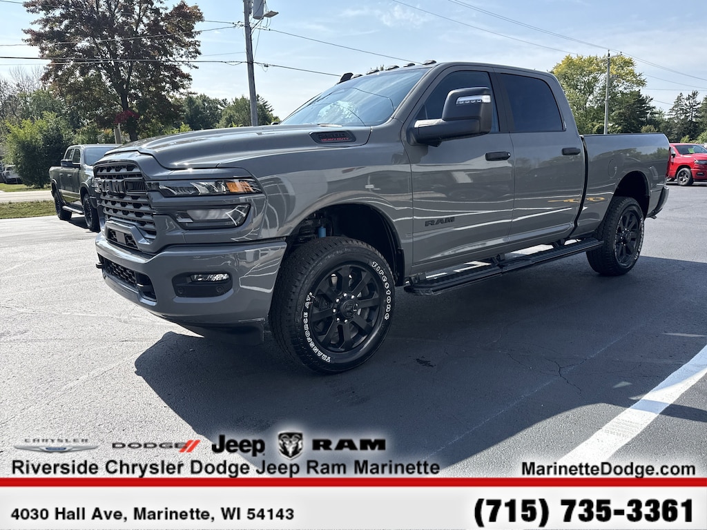 BIG HORN LEVEL 2 PLUS EQUIPMENT GROUP Surround View Camera System, Blind Spot & Cross Path Detection, LED Tail Lamps, Red Tail Lamp Bezels, Power Adjustable Pedals, Emergency Vehicle Alert System (EVAS), 12 Touchscreen Display, Glove Box Lamp, Auto Power-Folding Mirrors, Footwell Courtesy Lamp, 115V Auxiliary Rear Power Outlet, Media Hub w/2 Charge Only USBs, Anti-Spin Differential Rear Axle, Drowsy Driver Detection, Heated Front Seats, MOPAR Deployable Bed Step, Exterior 115V AC Outlet, Alexa Built-In, Active Lane Management System, Forward & Reverse Utility Lights, Locking Lower Glove Box, Remote Start System, 9 Alpine Speakers w/Subwoofer, Disassociated Touchscreen Display, Dual Wireless Charging Pad, Trailer Tire Pressure Monitoring System, Dual Glove Boxes, 115V Auxiliary Front Power, NIGHT EDITION Gloss Black Nostrils/Mic Black Grille, Tires: LT285/60R20E OWL On/Off Road, Black Exterior Truck Badging, Wheels: 20 x 8.0 Black Painted Aluminum, Body Color Grille-Surround, Black Interior Accents, Black Wheel Center Hub, Painted Front Bumper, Painted Rear Bumper, PAINTED FLAT WHEEL-TO-WHEEL SIDE STEPS, MOPAR FRONT & REAR RUBBER FLOOR MATS, TRANSMISSION: 8-SPEED AUTO (8HP75-LCV) (STD), ENGINE: 6.4L V8 HEMI HD (STD), BLACK, PREMIUM CLOTH BUCKET SEATS Bucket Seats, Power Adjust 8-Way Driver Seat, Folding Flat Load Floor Storage, Rear 60/40 Folding Seat, Front Seat Back Map Pockets, Power 2-Way Driver Lumbar Adjust, Full Length Upgraded Floor Console.