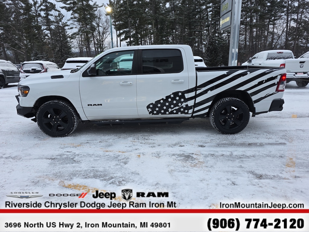 BIG HORN LEVEL 2 EQUIPMENT GROUP Radio: Uconnect 4 w/8.4 Display, Rear Window Defroster, ParkSense Front/Rear Park Assist w/Stop, Rear View Auto Dim Mirror, Power Adjustable Pedals, Rear Power Sliding Window, Rear Dome w/On/Off Switch Lamp, Glove Box Lamp, Power 4-Way Driver Lumbar Adjust, 115V Auxiliary Rear Power Outlet, Power 8-Way Driver Seat, 2 USB Full Function/Charge Only Media Hub, Heated Front Seats, Heated Steering Wheel, Foam Bottle Insert (Door Trim Panel), Class IV Receiver Hitch, Dampened Tailgate, Security Alarm, Black Premium Power Mirrors, Big Horn IP Badge, Remote Start System, SiriusXM Satellite Radio, 400W Inverter, Air Conditioning ATC w/Dual Zone Control, 115V Auxiliary Power Outlet, Universal Garage Door Opener, 2nd Row In Floor Storage Bins, Sun Visors, NIGHT EDITION Tires: 275/55R20 OWL All Season, Black Headlamp Bezels, Body Color Premium Power Mirrors, Body Color Door Handles, Exterior Mirrors Courtesy Lamps, Auto Dim Exterior Driver Mirror, Black Exterior Truck Badging, Anti-Spin Differential Rear Axle, Wheels: 20 x 9.0 Premium Paint/Polished, Exterior Mirrors w/Memory, Grille Surround 1 Black Texture 2 Black, Body Color Exterior Mirrors, Black Interior Accents, Dual Exhaust w/Black Tips, Power-Folding Mirrors, Body Color Front Bumper, Body Color Rear Bumper w/Step Pads, ENGINE: 5.7L V8 HEMI MDS VVT ETORQUE Active Noise Control System, Heavy Duty Engine Cooling, GVWR: 7,100 lbs, Dual Rear Exhaust w/Bright Tips, Hemi Badge, 23 Gallon Fuel Tank, 18 Aluminum Spare Wheel, PROTECTION GROUP Transfer Case Skid Plate, Steering Gear Skid Plate, Front Suspension Skid Plate, Fuel Tank Skid Plate, Tow Hooks, REMOTE START SYSTEM, TRANSMISSION: 8-SPEED AUTOMATIC (8HP75). Privacy Glass, Keyless Entry, Child Safety Locks, Steering Wheel Controls, Electronic Stability Control.